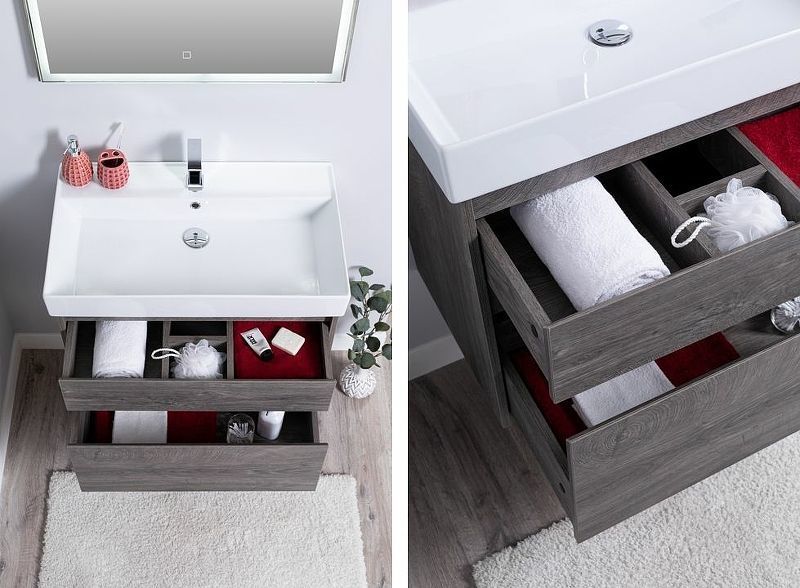 Тумба с раковиной Aquanet Nova Lite 60 из влагостойкой ламинированной древесно-стружечной плиты в благородном цвете «дуб рошелье» имеет достойный вид. Фактура натурального дерева выглядит изысканно, а подвесной монтаж придает визуальную легкость тумбе шириной 60 см. Она оборудована двумя выдвижными ящиками. Ящики довольно вместительные и позволяют разместить все необходимое. Фасады выполнены с декоративной интегрированной ручкой, не имеющей острых краев и внутренних углов, что обеспечивает удобство в эксплуатации и легкий уход за мебелью. Ящики комплектуются направляющими немецкого производства Hettich Quadro, оснащенными доводчиками. Неглубокая и стильная керамическая раковина «Латина» идеально подходит к тумбе.