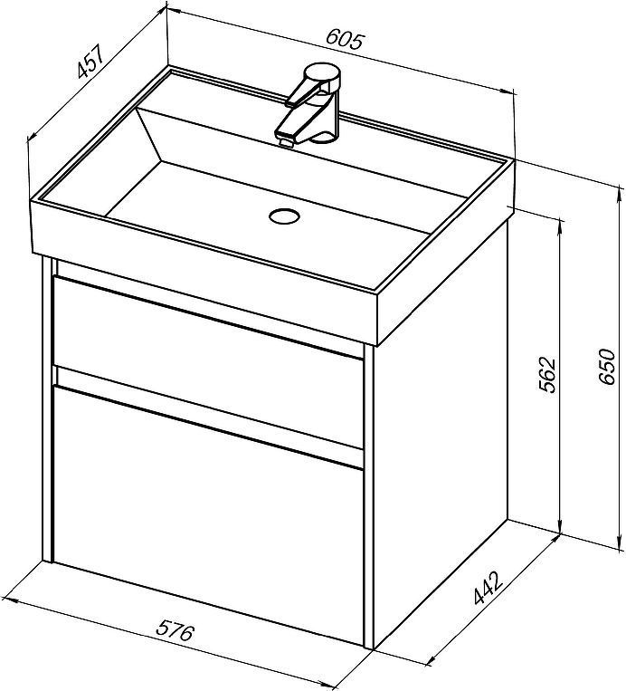 - Тумба: Aquanet Nova Lite 60, цвет дуб рошелье, 2 выдвижных ящика (242577)
