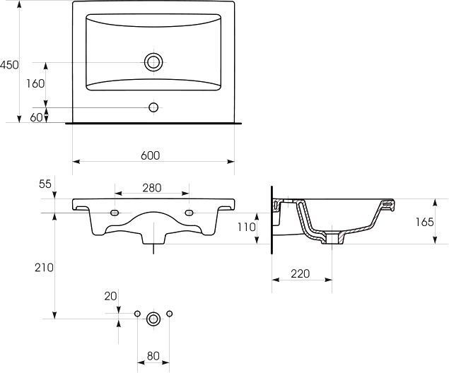 - Раковина-столешница: COMO 60 Cersanit (183659)