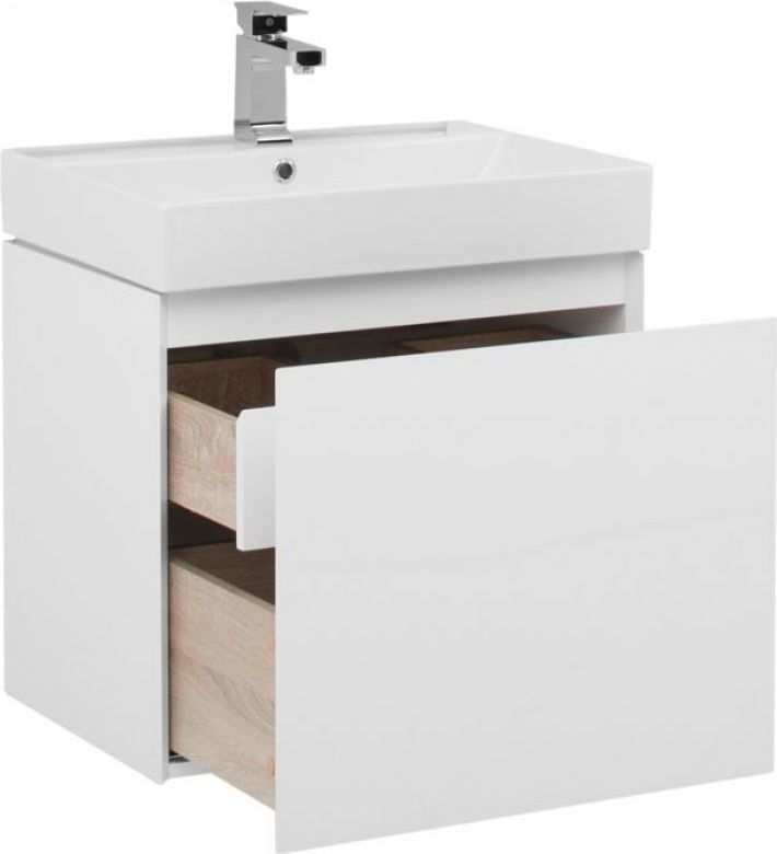 Тумба подвесная Aquanet Йорк 60 см с раковиной Sanovit 60 Slim Synergy, 1 выдвижной ящик, цвет белый.