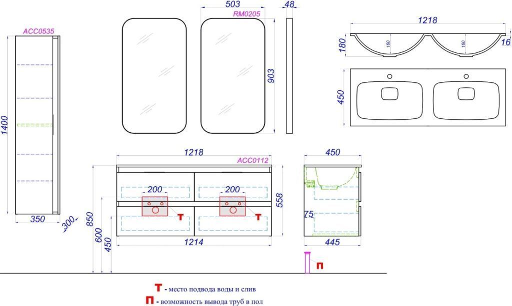 Характеристики тумба с раковиной Aqwella (ACC0112W)