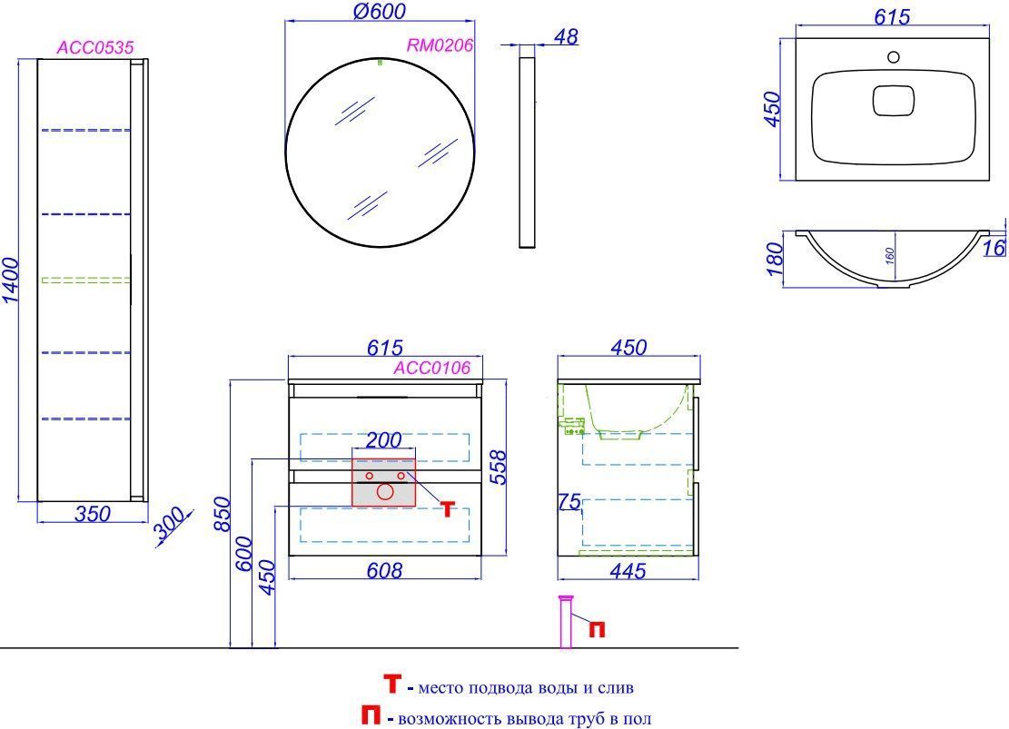 Характеристики тумба с раковиной Aqwella (ACC0106DZ)