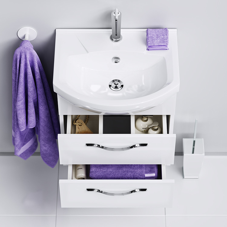 Тумба подвесная Aqwella Аллегро 50 см с раковиной Элеганс 50, 2 ящика, цвет белый.