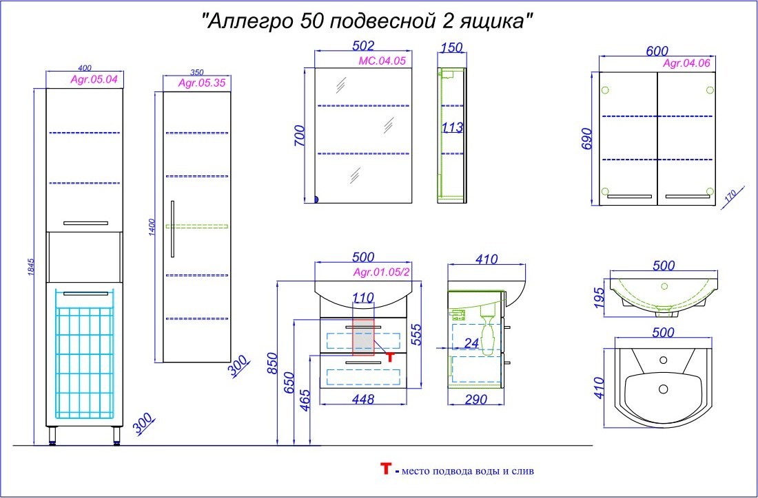 Описание тумба с раковиной Aqwella Agr.01.05/2