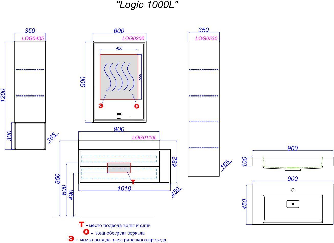 - Секция может быть расположена справа или слева от умывальника
