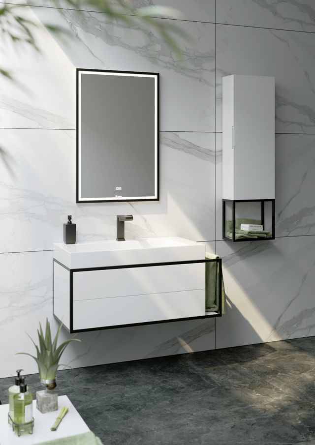 - Тумбы включают открытую секцию для полотенец с полкой, на которую можно поставить различные предметы