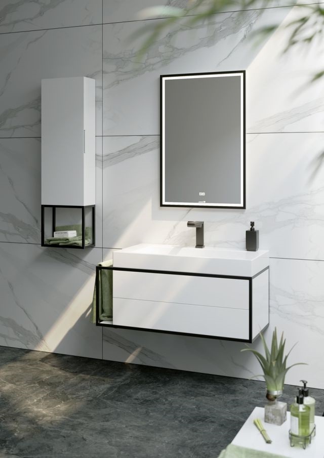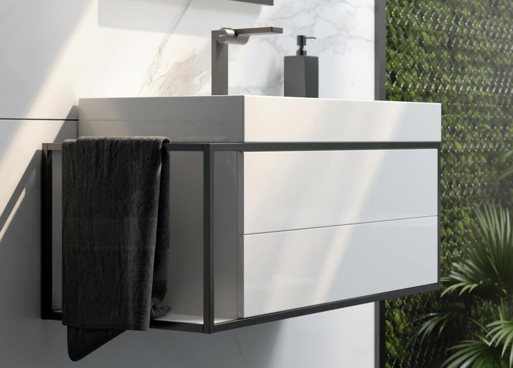 - Тумбы включают открытую секцию для полотенец с полкой, на которую можно поставить различные предметы