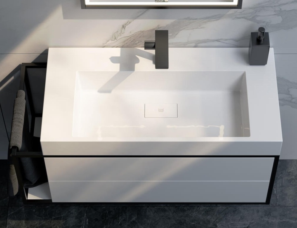 - Тумбы включают открытую секцию для полотенец с полкой, на которую можно поставить различные предметы