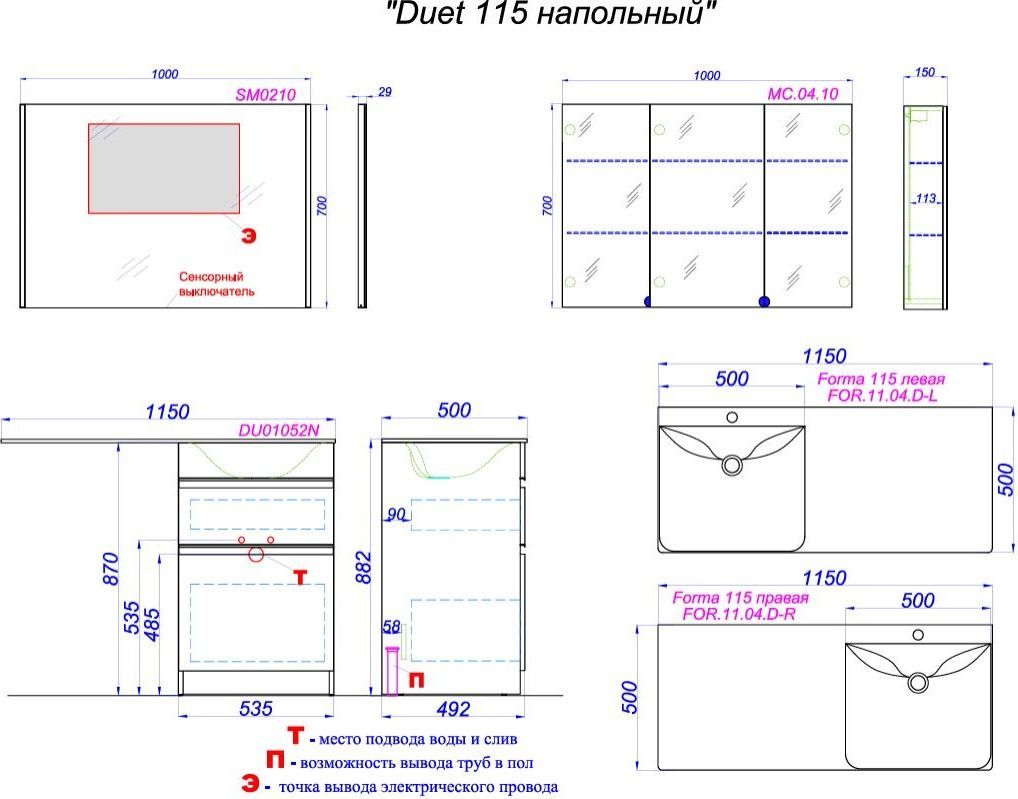 Тумба напольная Aqwella Duet DU01052NR с раковиной Forma 115, размер 1150x500x568 мм, цвет белый.