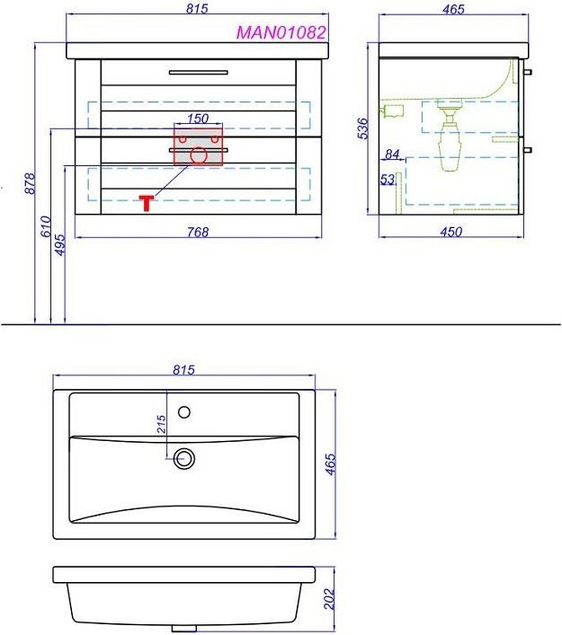 Характеристики тумба с раковиной Aqwella (MAN01082)