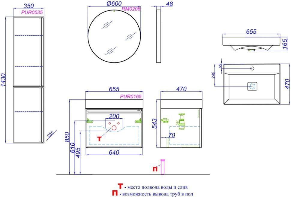 Описание тумба с раковиной Aqwella PUR0165GRM