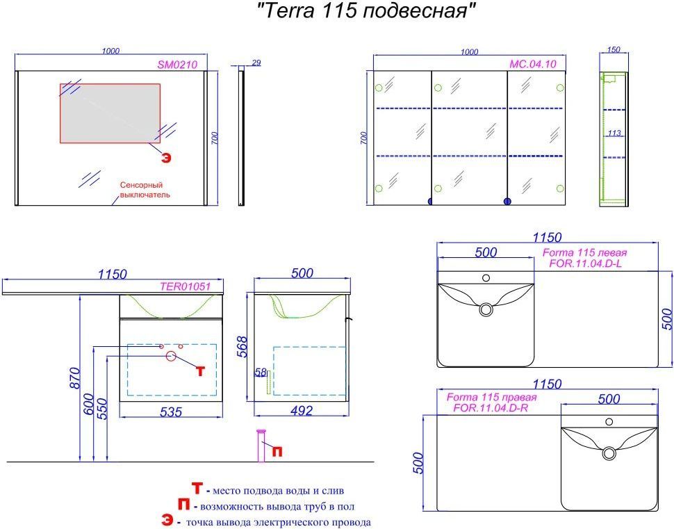 Характеристики тумба с раковиной Aqwella (TER01051DBR)