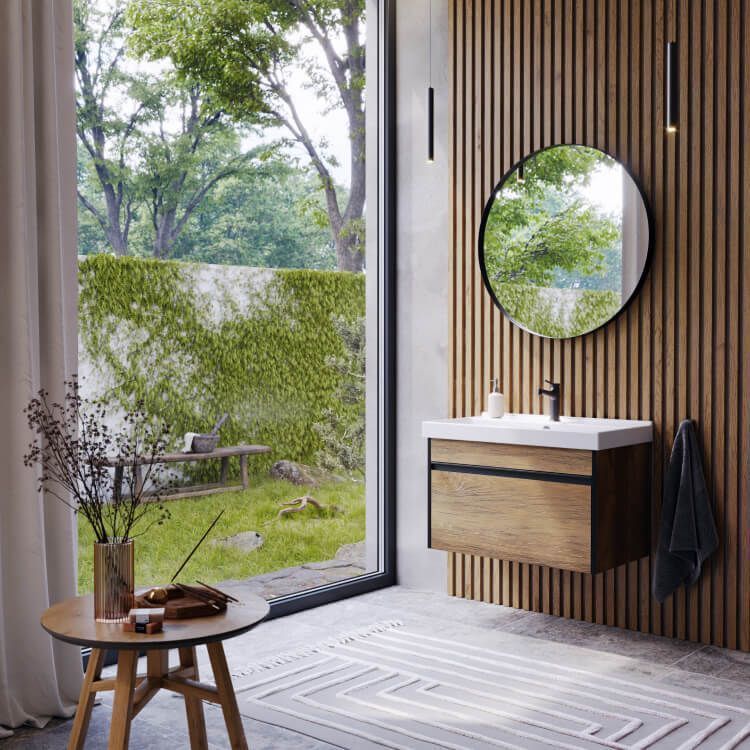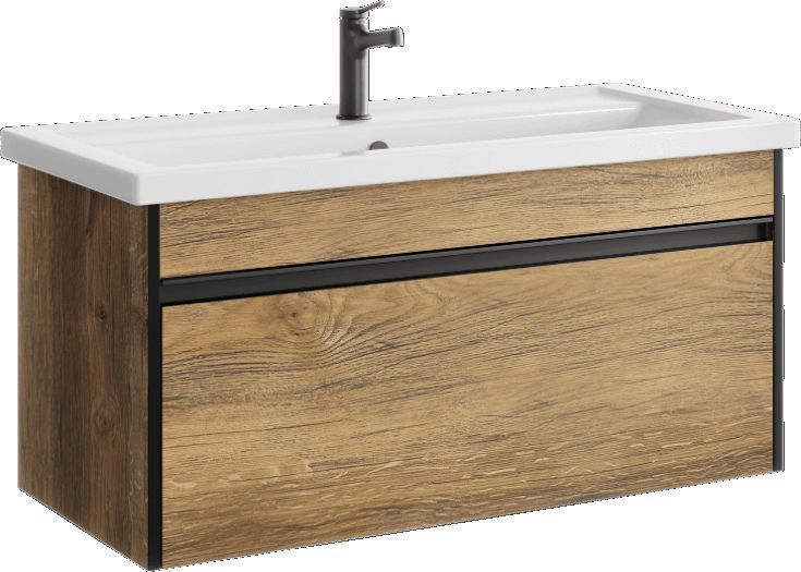 Тумба подвесная Aqwella Urban 100 см с раковиной Фостер 100 см, цвет дуб балтийский.