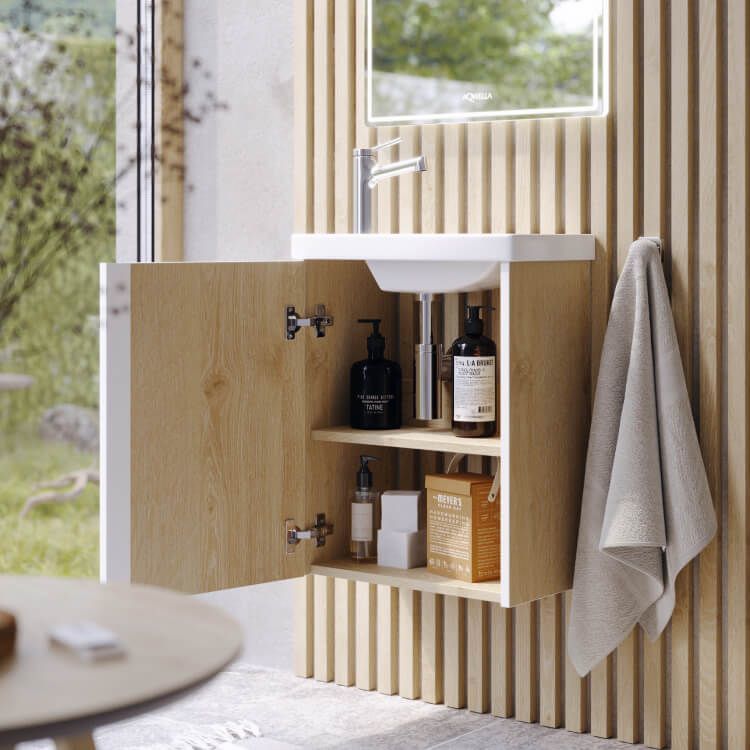 Тумба подвесная Aqwella Urban 45 см с раковиной Фостер 45 см, цвет дуб давос.