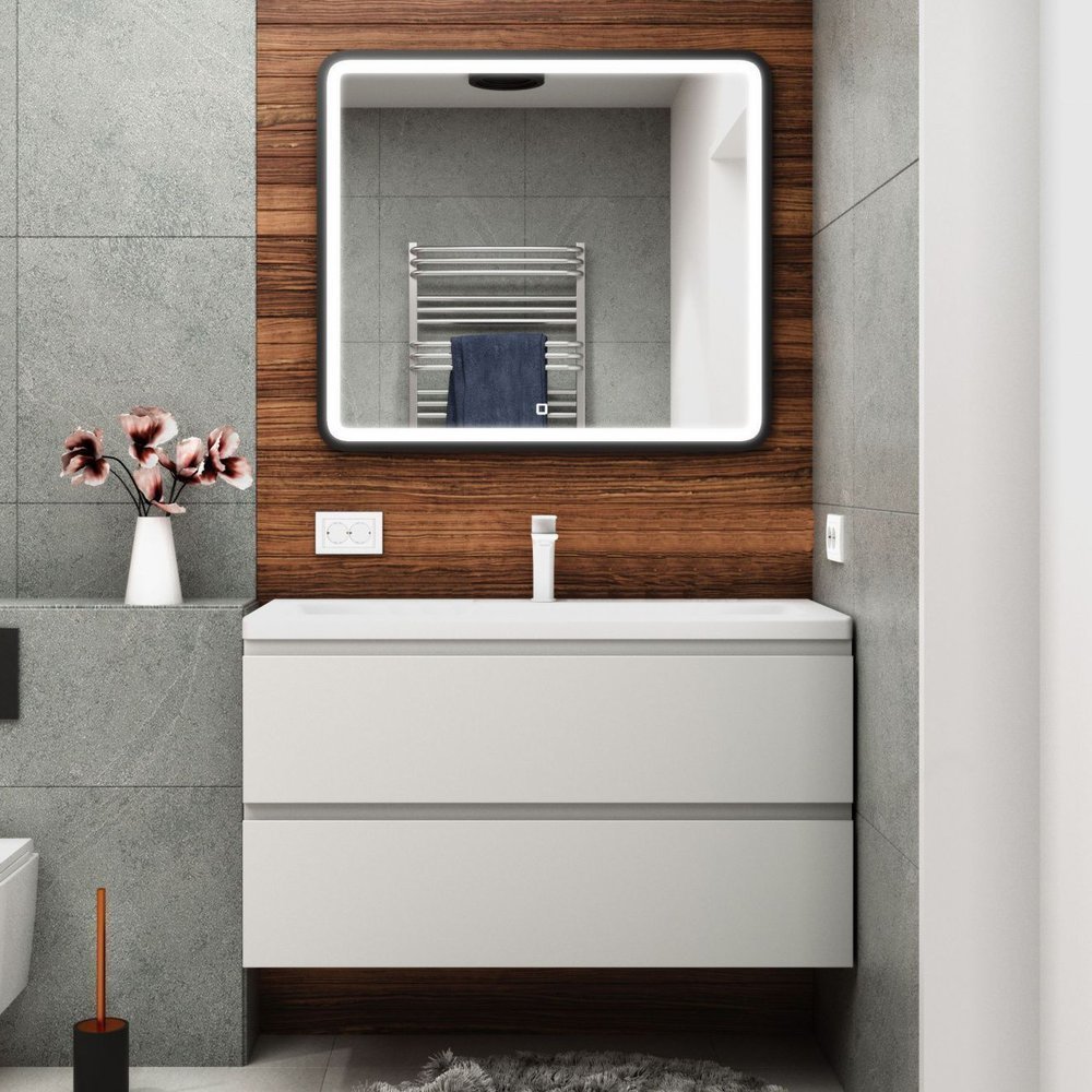 Тумба подвесная Art&Max Bianchi 100 см с раковиной AM-LAV-1000-MR-FP, 2 выдвижных ящика, направляющие скрытого монтажа, с доводчиками, цвет белый глянец.