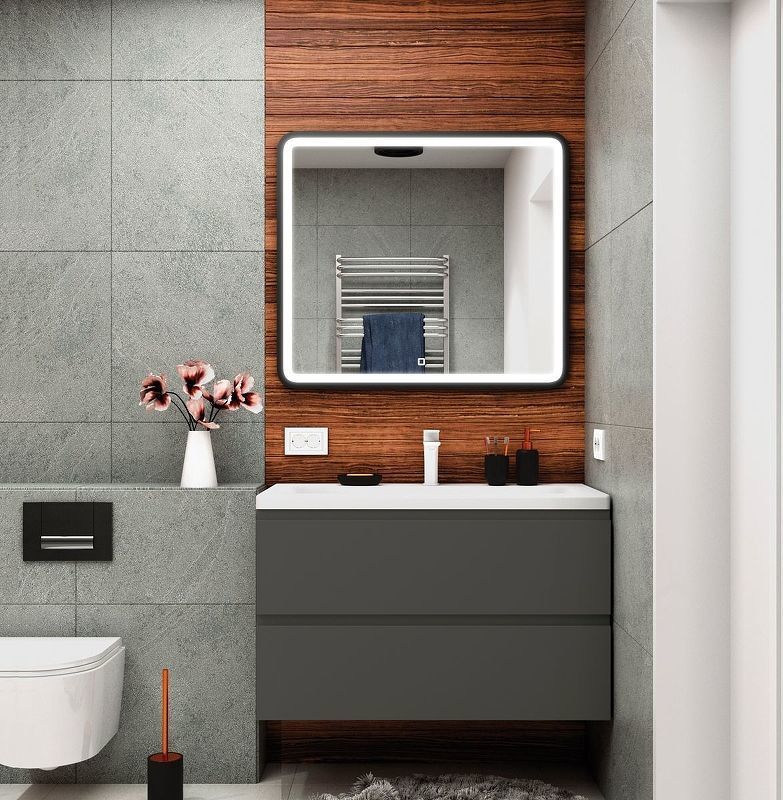 Тумба подвесная Art&Max Bianchi 100 см с раковиной AM-LAV-1000-MR-FP, 2 выдвижных ящика, направляющие скрытого монтажа, с доводчиками, цвет серый матовый.