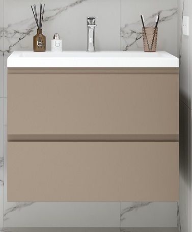 Тумба подвесная Art&Max Bianchi 75 см с раковиной AM-LAV-750-MR-FP, с 2 выдвижными ящиками, цвет эмаль капучино матовый.