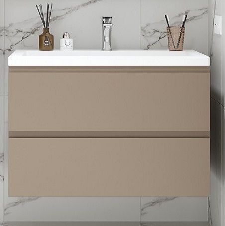 Тумба подвесная Art&Max Bianchi 90 см с раковиной AM-LAV-900-MR-FP, с 2 выдвижными ящиками, цвет эмаль капучино матовый.