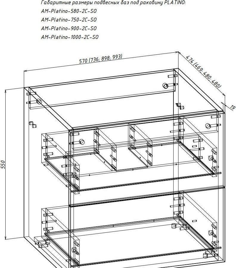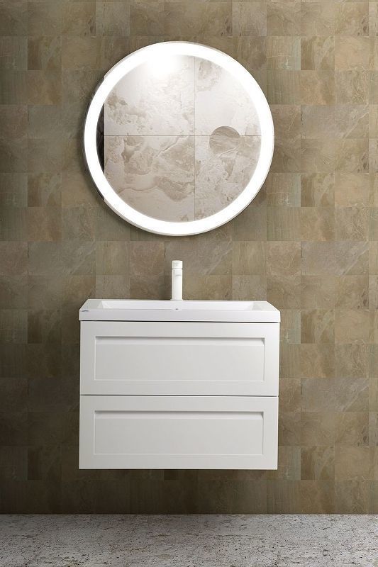 Тумба подвесная Art&Max Platino 75 см с раковиной AM-LAV-750-MR-A, 2 выдвижных ящика, направляющие скрытого монтажа, с доводчиками, цвет белый глянец.