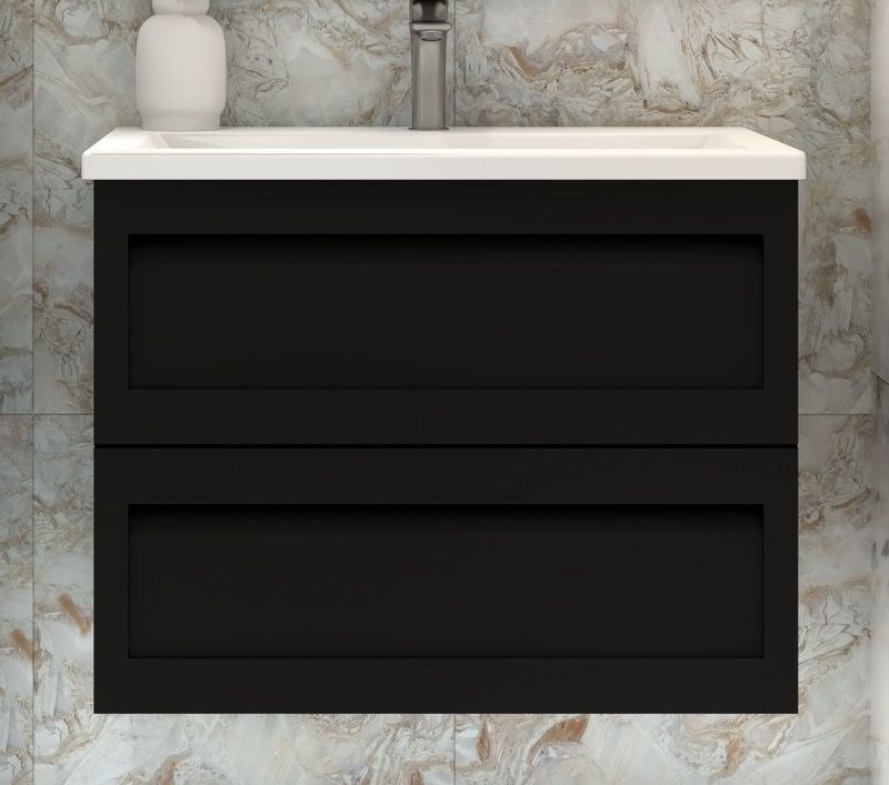 Тумба подвесная Art&Max Platino 75 см с раковиной AM-LAV-750-MR-A, 2 выдвижных ящика, направляющие скрытого монтажа, с доводчиками, цвет черный матовый.