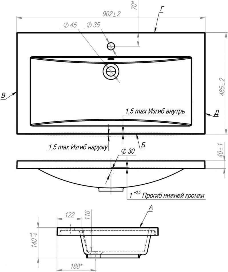 Характеристики тумба с раковиной Art&Max (AM-Platino-900-2C-SO-CM+AM-LAV-900-MR-A)
