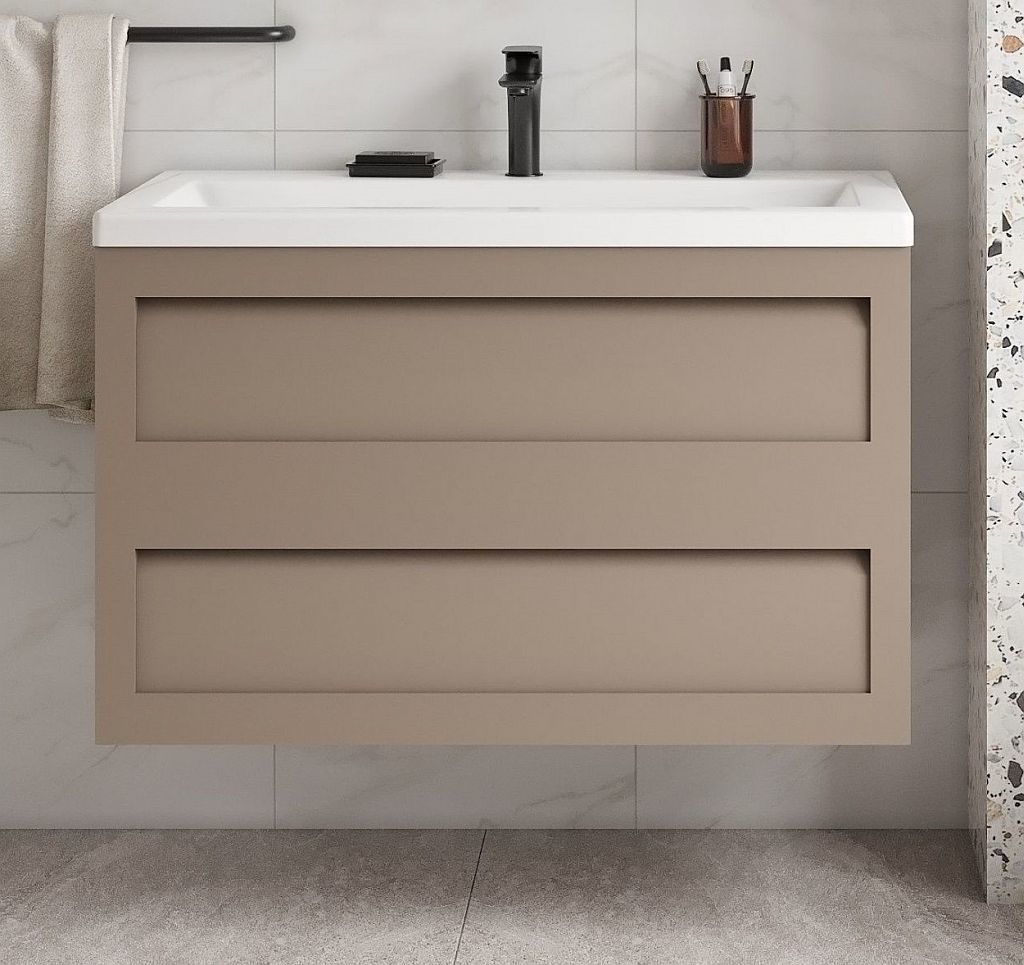 Тумба подвесная с раковиной Art&Max AM-Platino-900-2C-SO-CM 90 см, капучино матовый