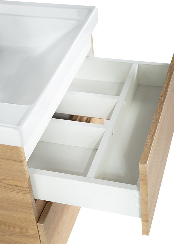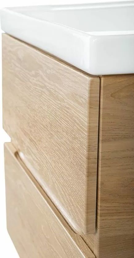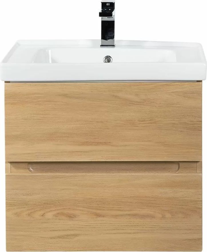 Тумба подвесная Art&Max Techno 60 см с раковиной Грэйс 60 641587, 2 выдвижных ящика, направляющие скрытого монтажа Боярд, не полного выдвижения с доводчиком, цвет дуб мадейра янтарь.