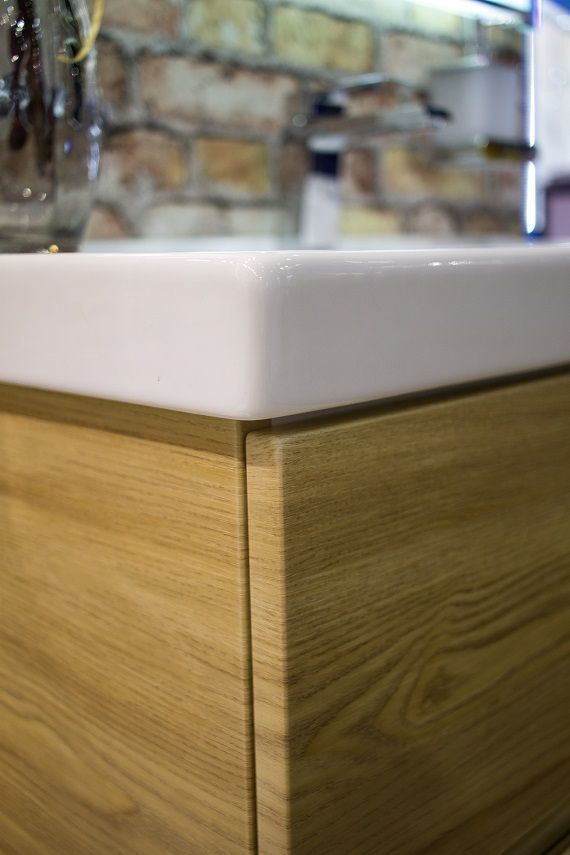 Тумба подвесная с раковиной Art&Max AM-Techno-600-2C-SO-LW674 60 см, дуб мадейра янтарь