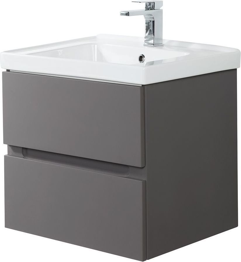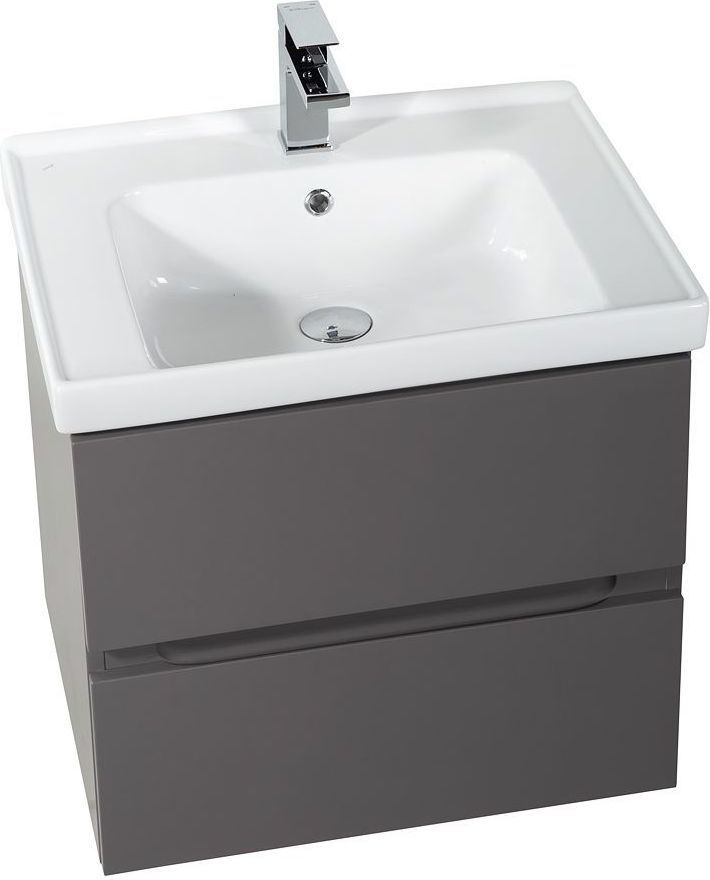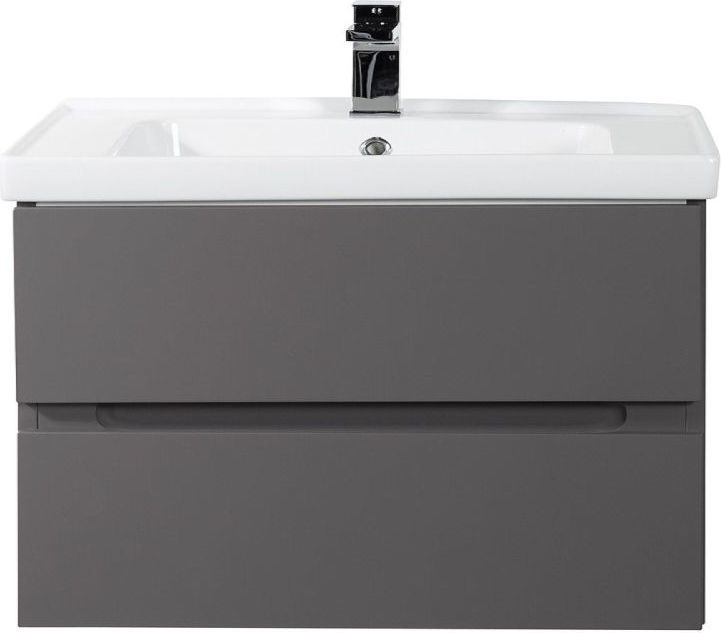 Тумба подвесная Art&Max Techno 90 см с раковиной Грэйс 90 641617, 2 выдвижных ящика, направляющие скрытого монтажа Боярд, не полного выдвижения с доводчиком, цвет смоки софт.