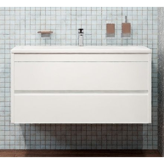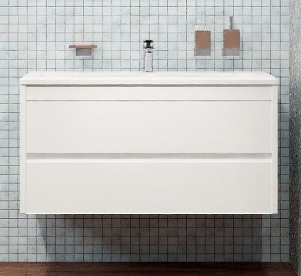 Тумба подвесная Art&Max Family 100 см с раковиной AM-LAV-1000-MR-A, 2 выдвижных ящика, направляющие скрытого монтажа Боярд, полного выдвижения с доводчиками, цвет белый глянец.