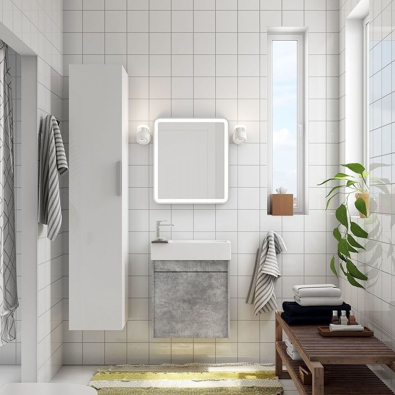 Тумба подвесная Art&Max Family 40 см с раковиной AM-LAV-400-MR-Mini, 1 распашная дверца, петли Боярд с доводчиками, цвет цемент.