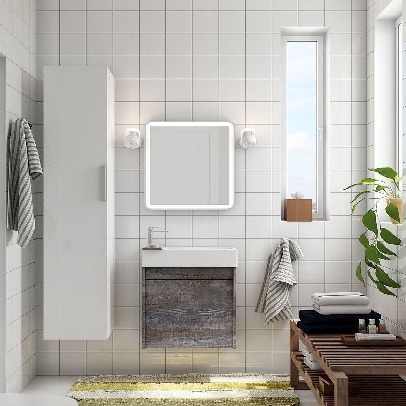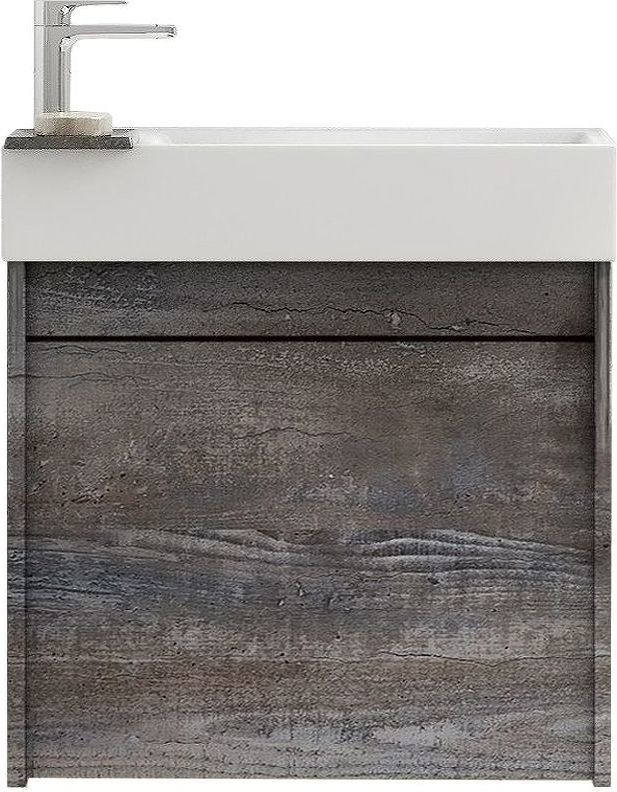 Тумба подвесная Art&Max Family 50 см с раковиной AM-LAV-500-MR-Mini, 1 распашная дверца, петли Боярд с доводчиками, цвет бетон экзотик.