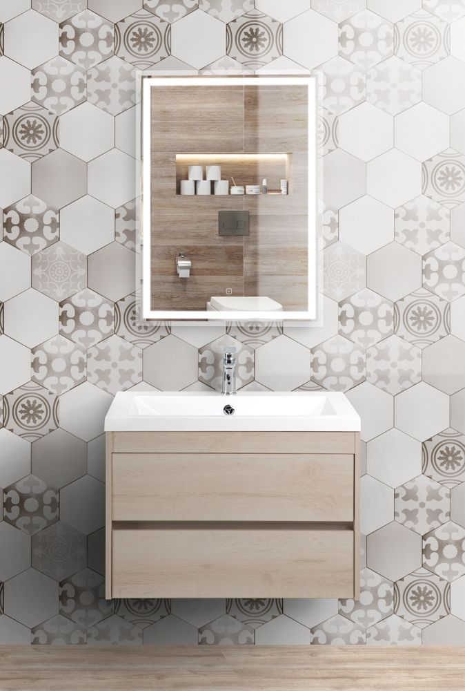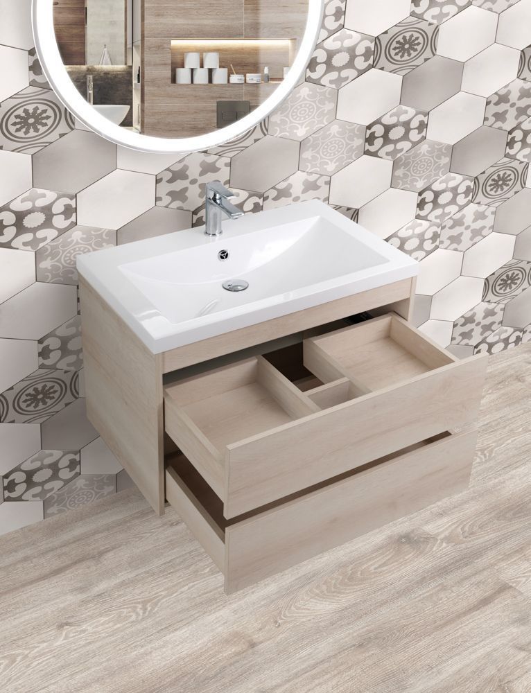 Тумба подвесная Art&Max Family 58 см с раковиной AM-LAV-580-MR-A, 2 выдвижных ящика, направляющие скрытого монтажа Боярд, полного выдвижения с доводчиками, цвет сканди.
