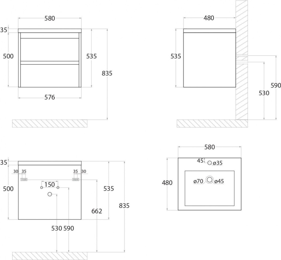 Характеристики тумба с раковиной Art&Max (Family-580-2C-SO-PE+AM-LAV-580-MR-A)