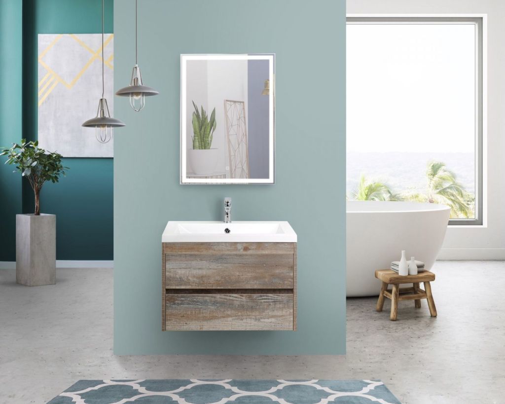 Тумба подвесная Art&Max Family 58 см с раковиной AM-LAV-580-MR-A, 2 выдвижных ящика, направляющие скрытого монтажа Боярд, полного выдвижения с доводчиками, цвет бетон экзотик.