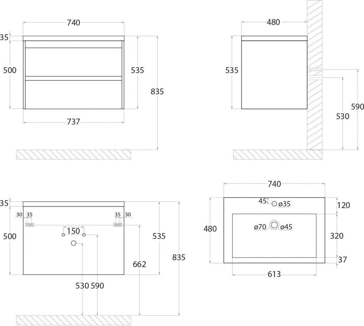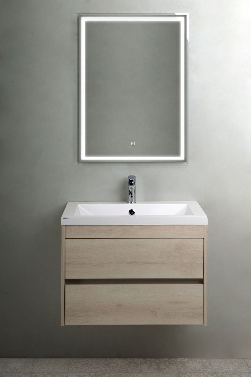 Тумба подвесная Art&Max Family 75 см с раковиной AM-LAV-750-MR-A, 2 выдвижных ящика, направляющие скрытого монтажа Боярд, полного выдвижения с доводчиками, цвет сканди.