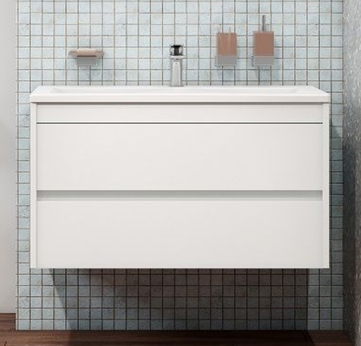 Тумба подвесная Art&Max Family 90 см с раковиной AM-LAV-900-MR-A, 2 выдвижных ящика, направляющие скрытого монтажа Боярд, полного выдвижения с доводчиками, цвет белый глянец.