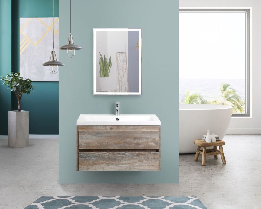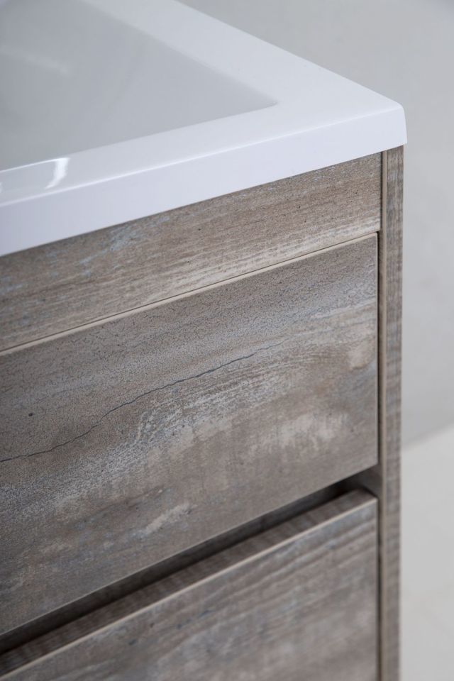 Тумба подвесная Art&Max Family 90 см с раковиной AM-LAV-900-MR-A, 2 выдвижных ящика, направляющие скрытого монтажа Боярд, полного выдвижения с доводчиками, цвет бетон экзотик.