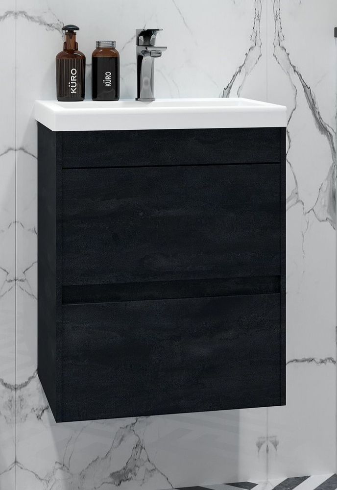 Тумба подвесная Art&Max Family 40 см с раковиной AM-LAV-400-MR-A, 2 выдвижных ящика, цвет угольный камень .