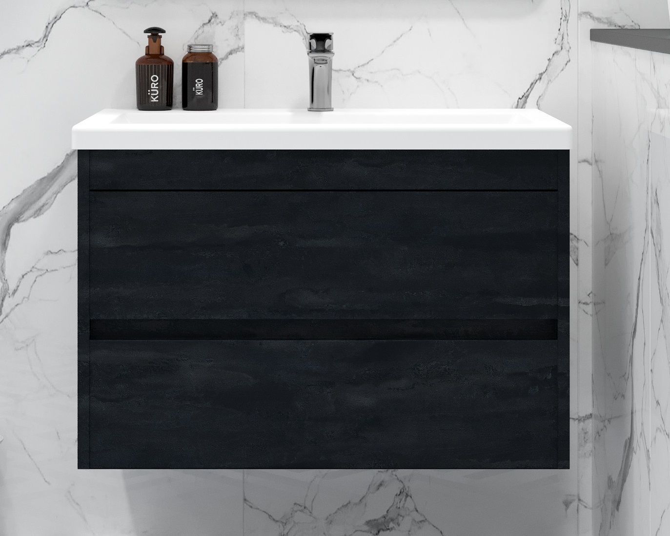 Тумба подвесная Art&Max Family 75 см с раковиной AM-LAV-750-MR-A, 2 выдвижных ящика, цвет угольный камень.