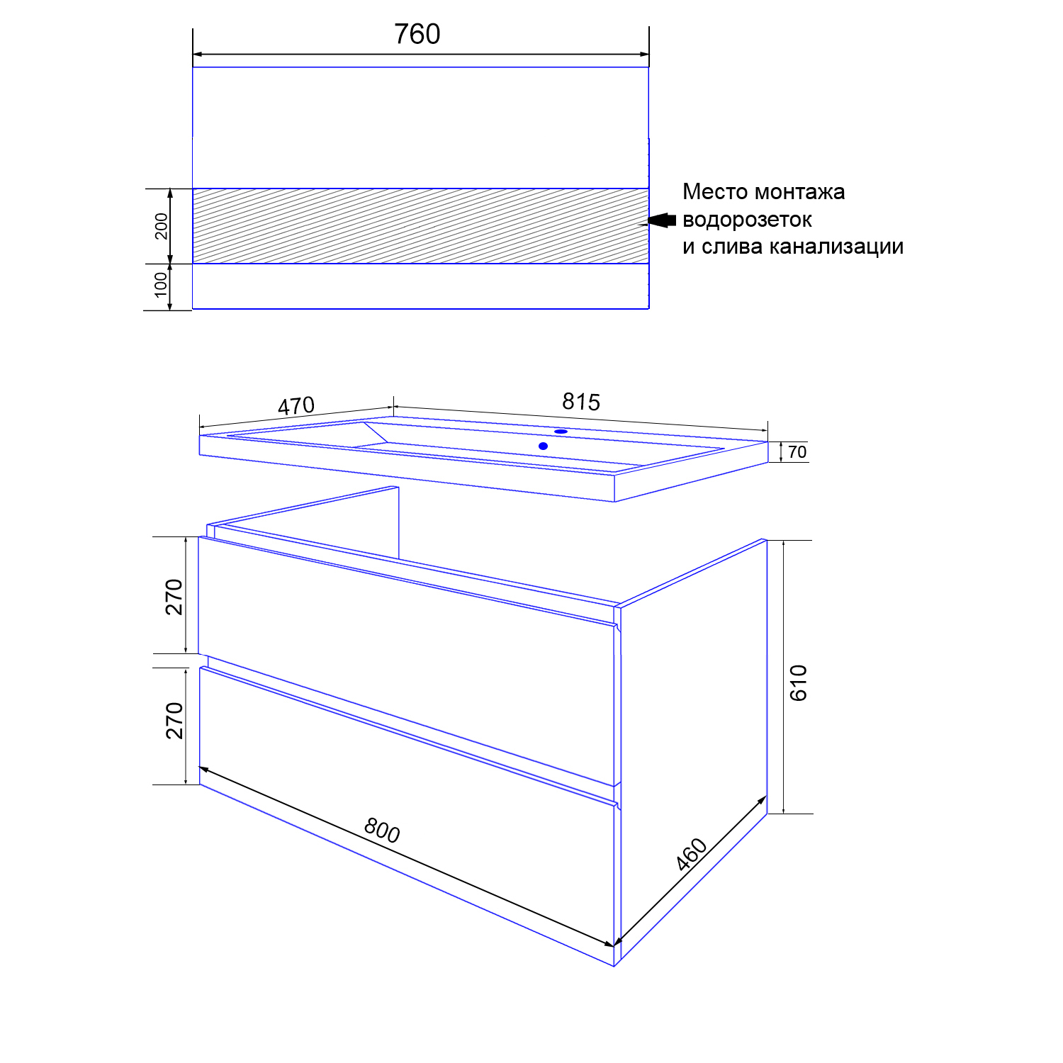 Тумба подвесная с раковиной Azario Мила 80 см CS00091365, белый матовый