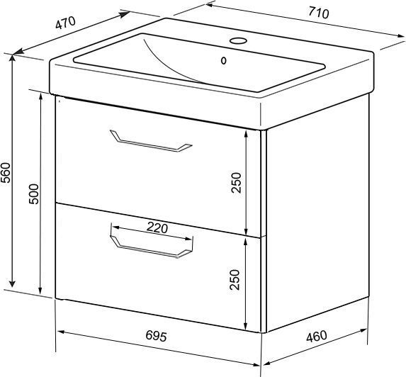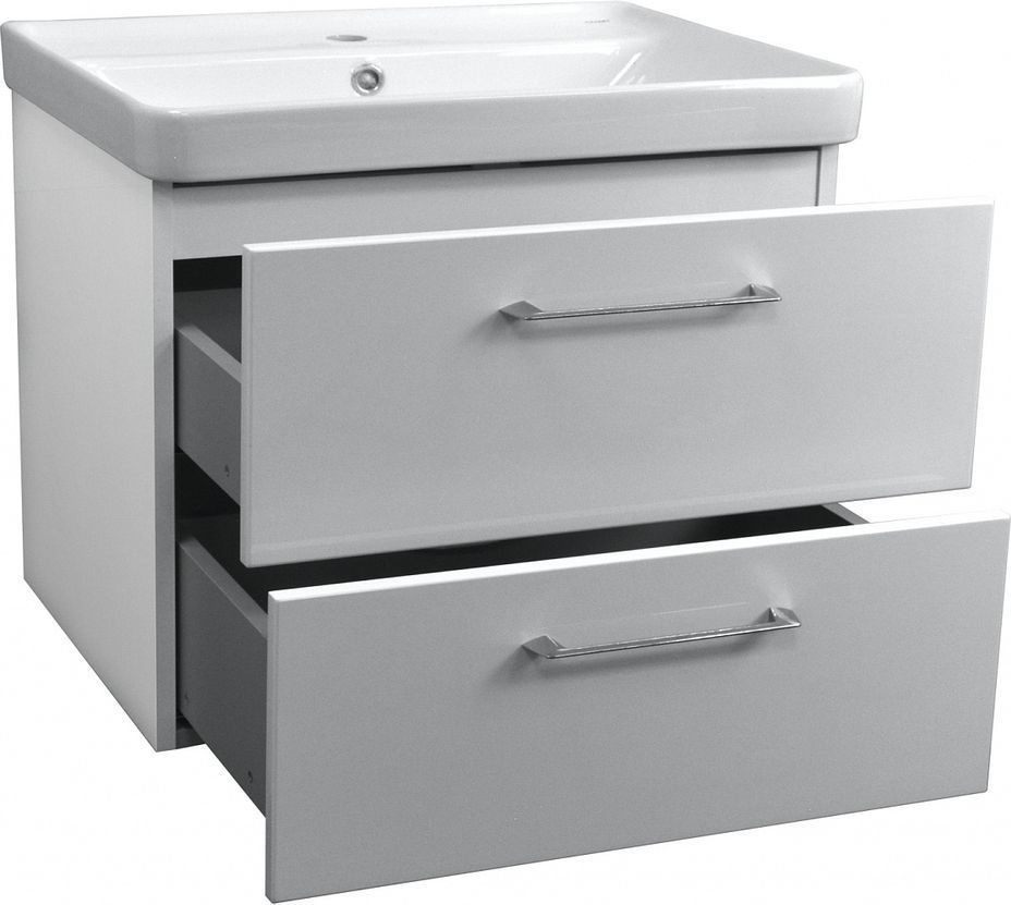Тумба подвесная Azario Ника 70 см с раковиной Monte 70, 2 выдвижных ящика с доводчиками, цвет белый матовый.