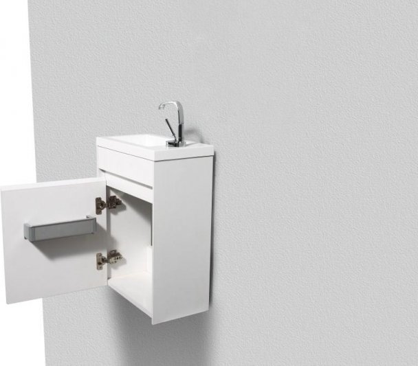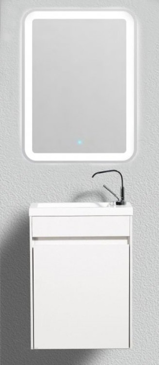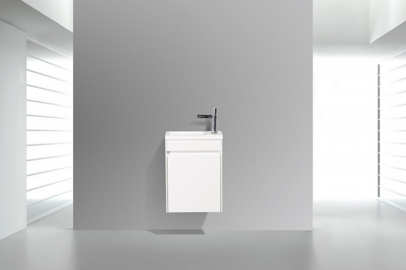 Тумба подвесная BelBagno 40 см PIETRA MINI-400-1A-SO-BL-L с раковиной 40 см BB-400-PM-LVB, цвет - белый глянец. Дверца расположена слева.