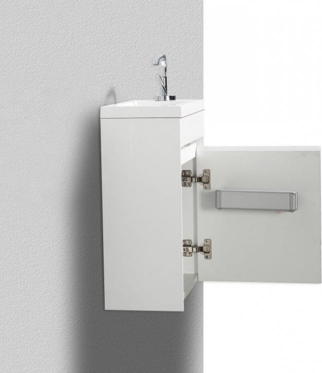 Тумба подвесная BelBagno 40 см PIETRA MINI-400-1A-SO-BL-R с раковиной 40 см BB-400-PM-LVB, цвет - белый глянец. Дверца расположена справа.