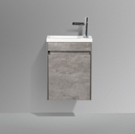 Тумба подвесная BelBagno 40 см PIETRA MINI-400-1A-SO-SCM-L с раковиной 40 см BB-400-PM-LVB, цвет - цемент. Дверца расположена слева.