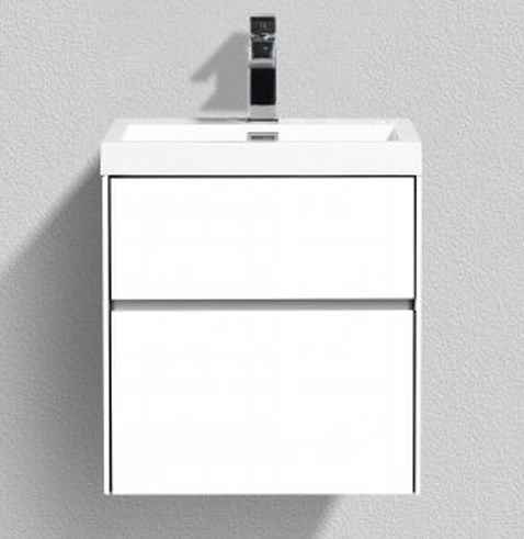 Тумба подвесная BelBagno 50 см PIETRA MINI-500AS-2C-SO-BL с раковиной 50 см BB-500-PM-LVB, два выдвижных ассиметричных ящика, цвет - белый глянец.
