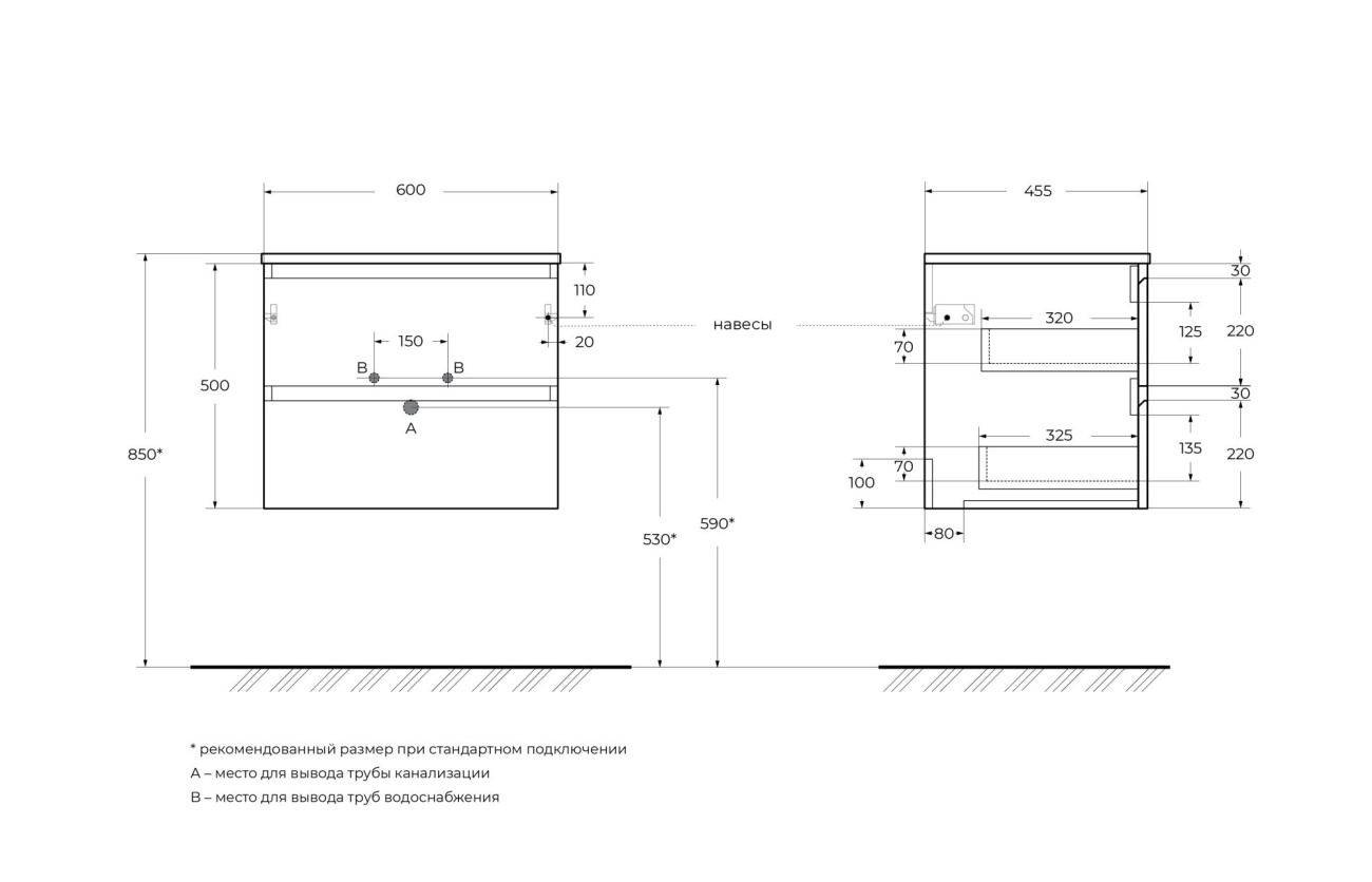 Характеристики тумба с раковиной BelBagno (KRAFT-600-2C-SO-AO+BB600ETL)