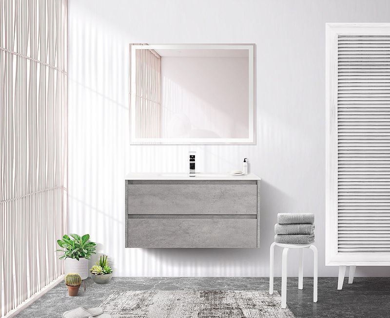 Тумба подвесная с раковиной BelBagno 90 см KRAFT-900-2C-SO-CG (раковина BB900ETL) Cemento Grigio