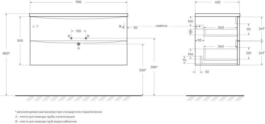 - База под керамическую раковину подвесная с двумя выдвижными ящиками