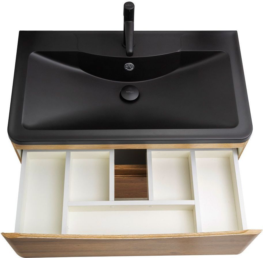 Тумба подвесная BelBagno Acqua 100 см с раковиной BB1000/455-LV-ART-ALR-NERO, цвет Rovere Rustico.